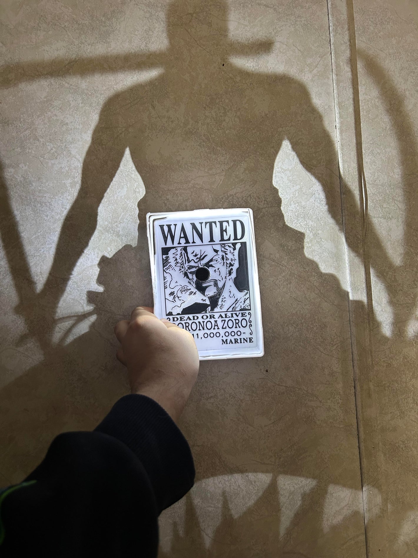 The shadow looks best on a flat, light-colored wall in a darker room for maximum clarity. The closer and more direct the angle, the sharper and more detailed the Zoro projection will appear.